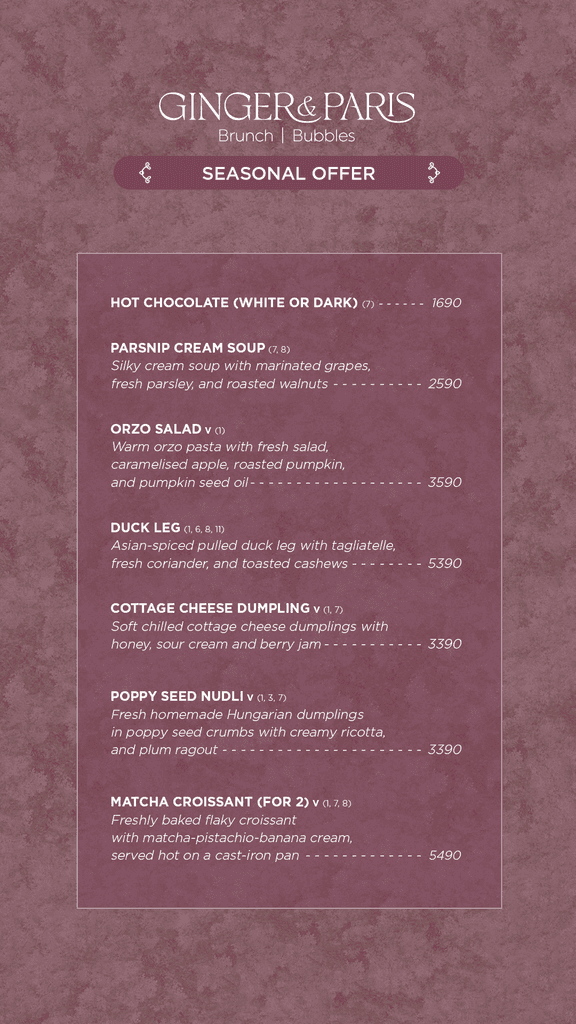When Ginger & Paris was born, we were guided by a clear vision: to create a place where sophistication doesn’t exclude warmth, and where everyday moments can feel special. Our goal was to craft a friendly yet stylish environment where quality comes naturally and the small joys of life — a delicious bite, a good conversation, or a glass of champagne — are worth celebrating.